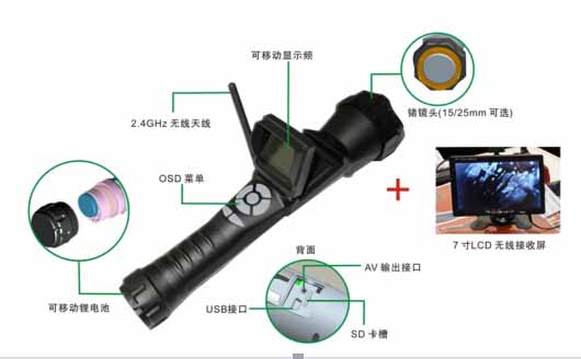 SD卡,2節(jié)可充電電池,電池充電器,一個7英寸的液晶接收機(jī)配